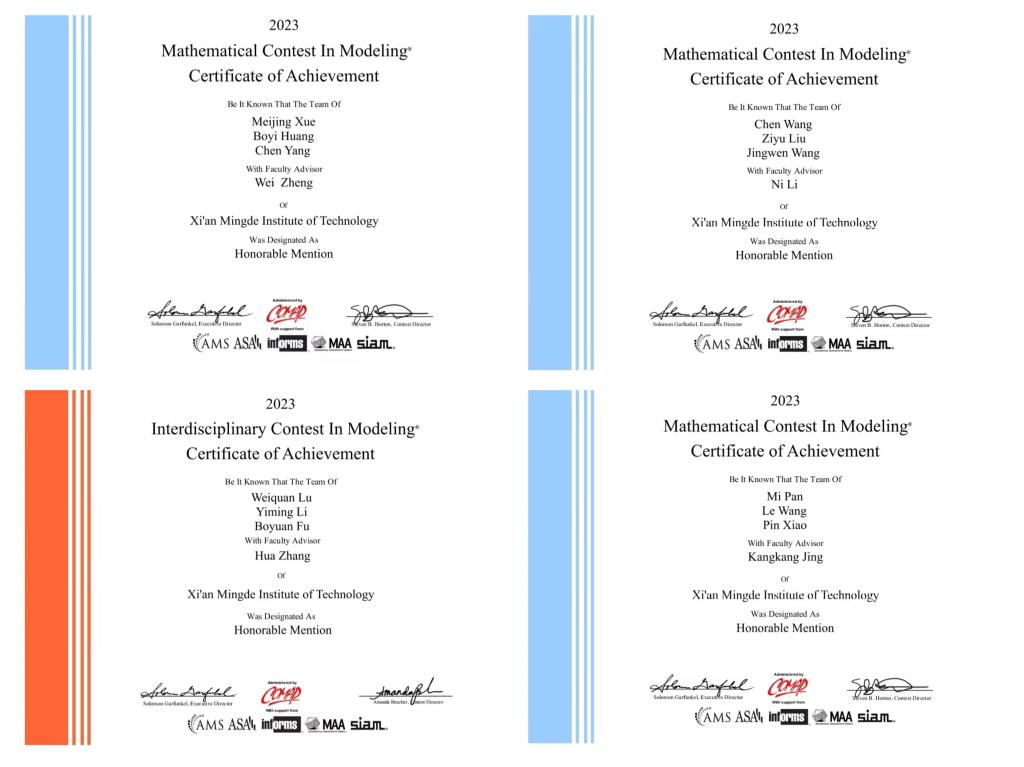 36365官网在2023年美国大学生数学建模竞赛中再获佳绩