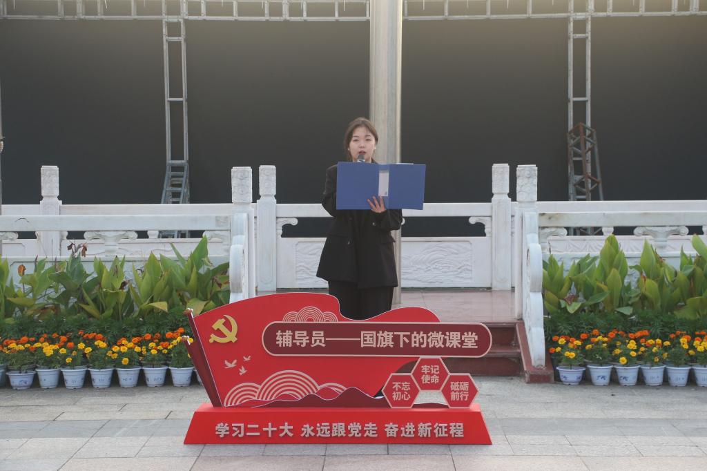 为培养青年一代学子甘于奉献、勇担使命的精神品质,10月9日清晨,在南校区的朝阳下,“辅导员说成长”——“以青春之我,担时代之责”国旗下微课堂爱国主义教育系列活动在学校中心广场举行。党委学生工作部相关老...