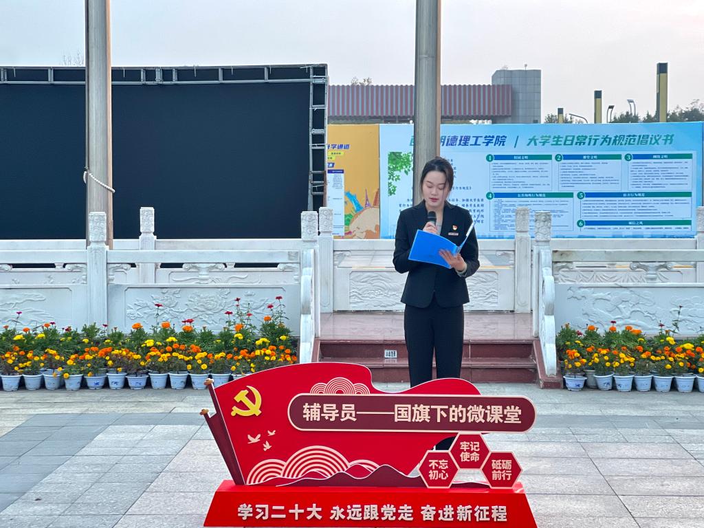 10月23日清晨,“辅导员说成长”——第十八期辅导员讲微课“轻舟不惧万重山,生逢盛世当有为”国旗下的微课堂爱国主义教育系列活动在学校中心广场举行,党委学生工作部老师、语言文化传播学院师生代表参加活动。7时...