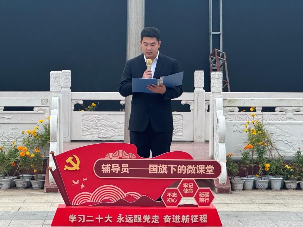 10月8日,“辅导员说成长”——辅导员讲微课“重启学习之旅:携手并进,共创辉煌”国旗下的微课堂爱国主义教育系列活动在学校中心广场举行,党委学生工作部老师、语言文化传播学院师生代表参加活动。升国旗仪式结束...