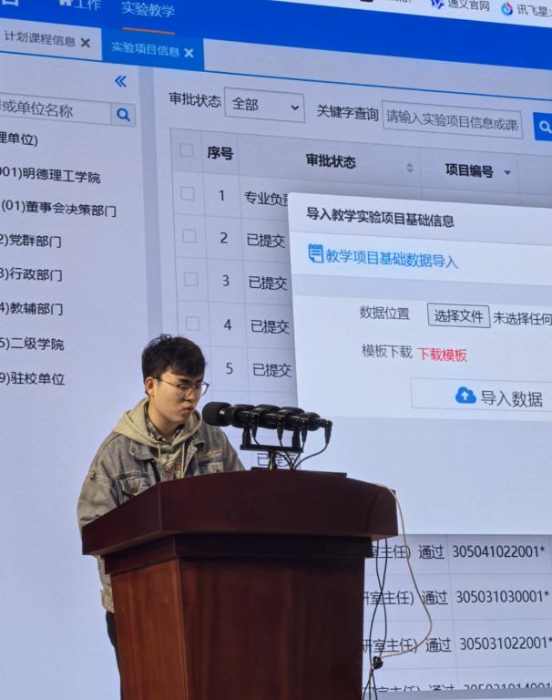 随后,学校邀请实验室管理系统技术工程师为大家进行系统实验教学模块的操作讲解,他详细演示了系统的各项操作,包括实验项目管理、教学任务管理、实验开出率、实验报告提交与批改、实验课程电子日志的录入等模块。他一边操作一边讲解,确保每位教师都能清晰理解并掌握系统的使用方法,进一步推进了教学信息化建设。