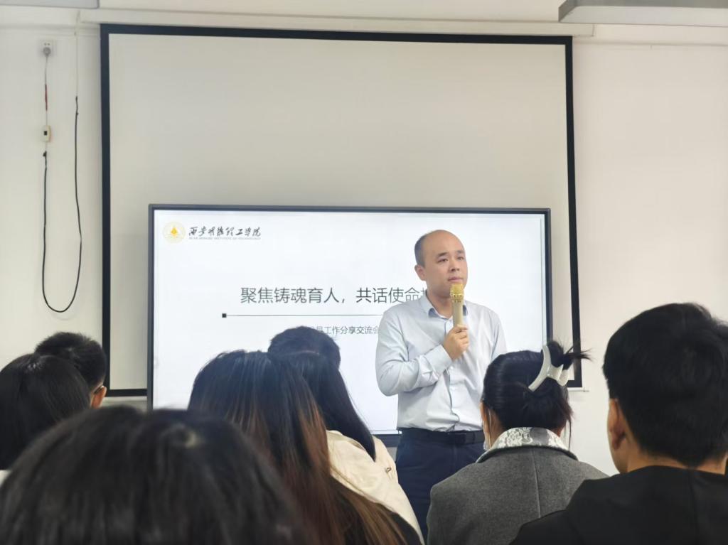 信息工程学院辅导员王旭光以《学思践悟,赋能成长----辅导员开展日常管理工作的心得分享》为题,结合2024年全省辅导员培训内容,从当代学生的思想行为特征及规律、网络不良言论的特征分析与应对、马克思主义宗教观的教育与引导学生心理危机的识别与应对以上四点进行分享。他表示,辅导员要深刻认识立德树人根本任务的核心要义,看齐高线、紧扣主线、坚守底线,在思想引领、日常管理、活动组织中发挥好辅导员的重要支撑作用。