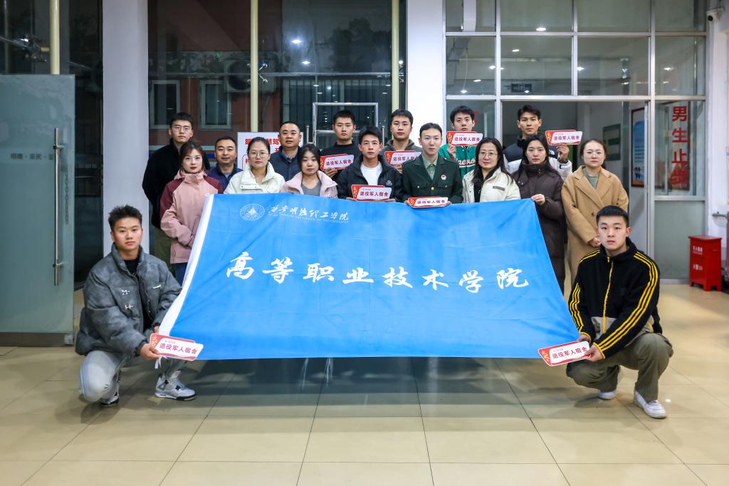高等职业技术学院举行“退伍军人宿舍”挂牌活动,对退伍学生来说不仅是一份荣誉,更是一份责任,旨在让退伍学生在今后的生活与学习中亮明身份,率先垂范,用一言一行影响和带动身边的同学,为建设文明舒适的宿舍环境,为学校国防教育和发展贡献力量。