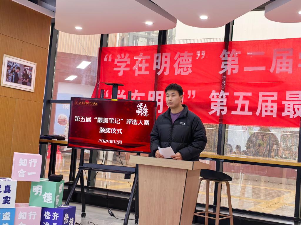 颁奖仪式上,党委学生工作部花芸首先对获奖学生表达了诚挚的祝贺,并高度评价了此次学风微电影大赛和“最美笔记”评选活动,认为这是同学们自我展示、交流思想的宝贵机会。她鼓励同学们继续发扬优良学风,勤奋学习,勇于探索,带动周围同学共同进步,携手前行在学习的征途上。