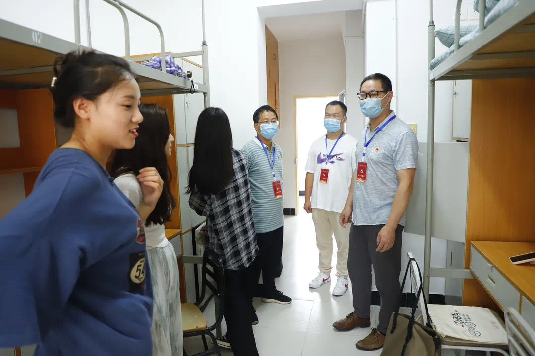 践行党员初心使命,服务新生入学。经济与管理学院党委动员全体党员领导干部、专职教师、管理人员、辅导员和学生党团干部积极加入新生入学教育队伍,全面助力新生转型。2021级新生辅导员通过建立新生QQ交流群,搭建起与新生报到前的互动交流,进行实时在线答疑,耐心回答新生各类问题,利用学院微信公众号推送萌新攻略系列文章,服务新生安全、顺利报到;党委书记何文举带领辅导员深入新生宿舍检查家具设施配备情况,发现问题现场解决,确保新生入住舒心;新生报到期间,学院师生党员广泛参与迎新工作,学院领导亲临现场、深入新生宿舍进行指导和看望,让新生感受到家的温暖。