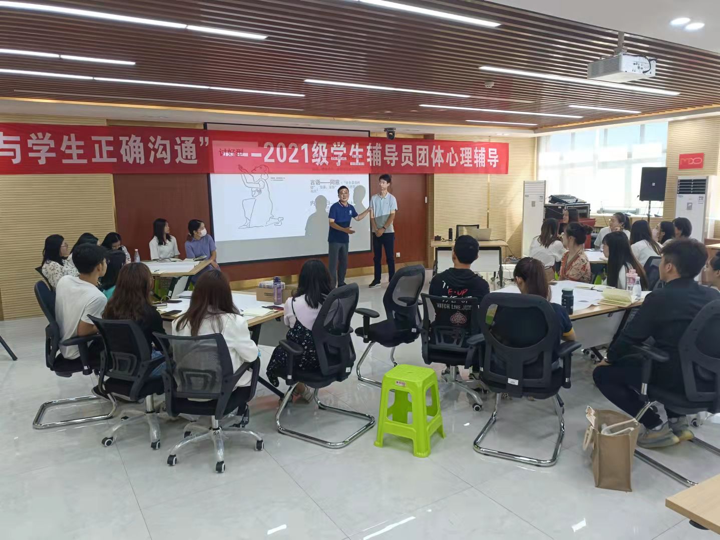 9月10日上午,“与学生正确沟通”--2021级学生辅导员心理团辅活动在明志楼311会议室召开,活动邀请通识教育学院薛飘老师主讲,全体2021级学生辅导员、梯队辅导员参加了团辅活动。