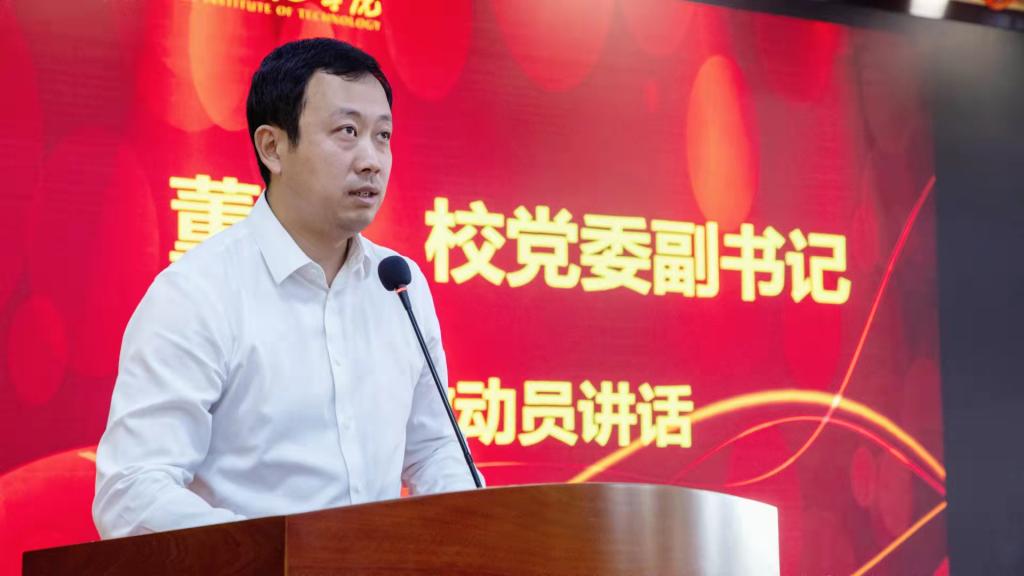 最后,校党委副书记董昊作动员讲话。董书记分享了自身工作经历,以及数学建模竞赛的众多益处,鼓励参赛的同学们珍惜锻炼、成长的机会,并希望同学们秉持着不怕苦、不畏难的精神,发扬团队合作力量,在竞赛中再创佳绩。