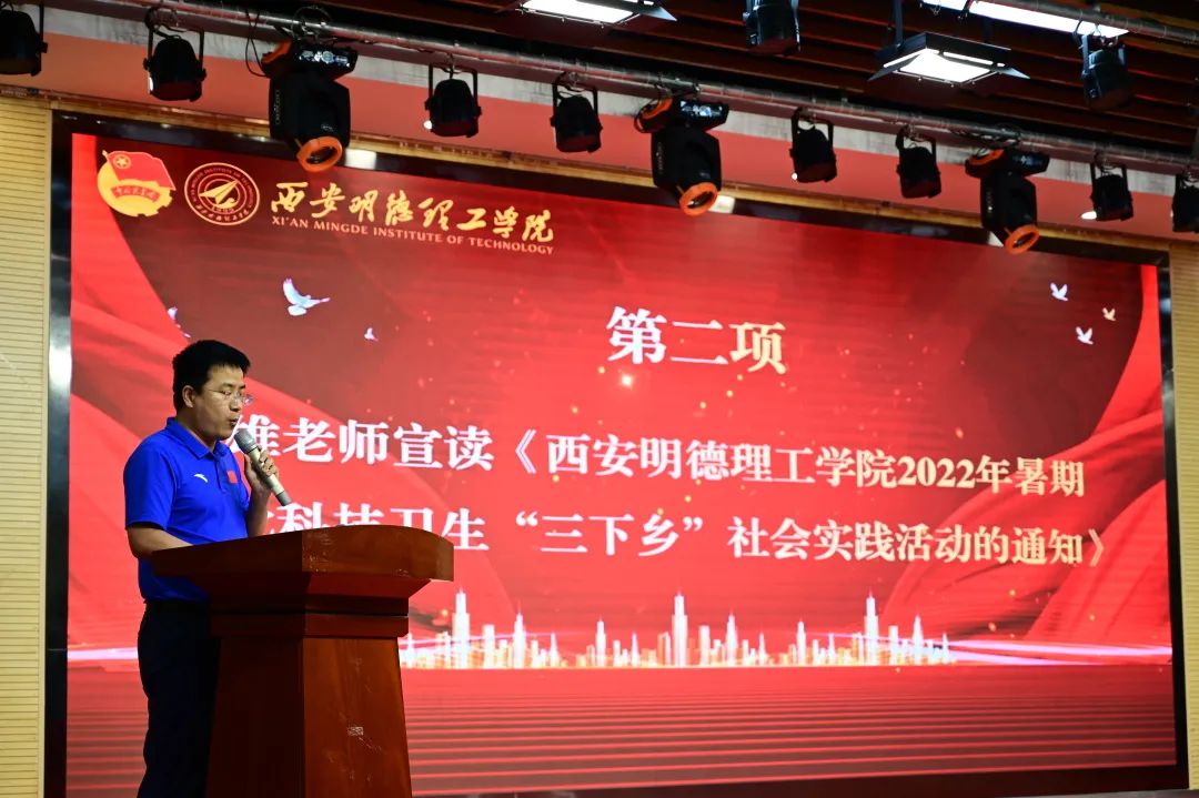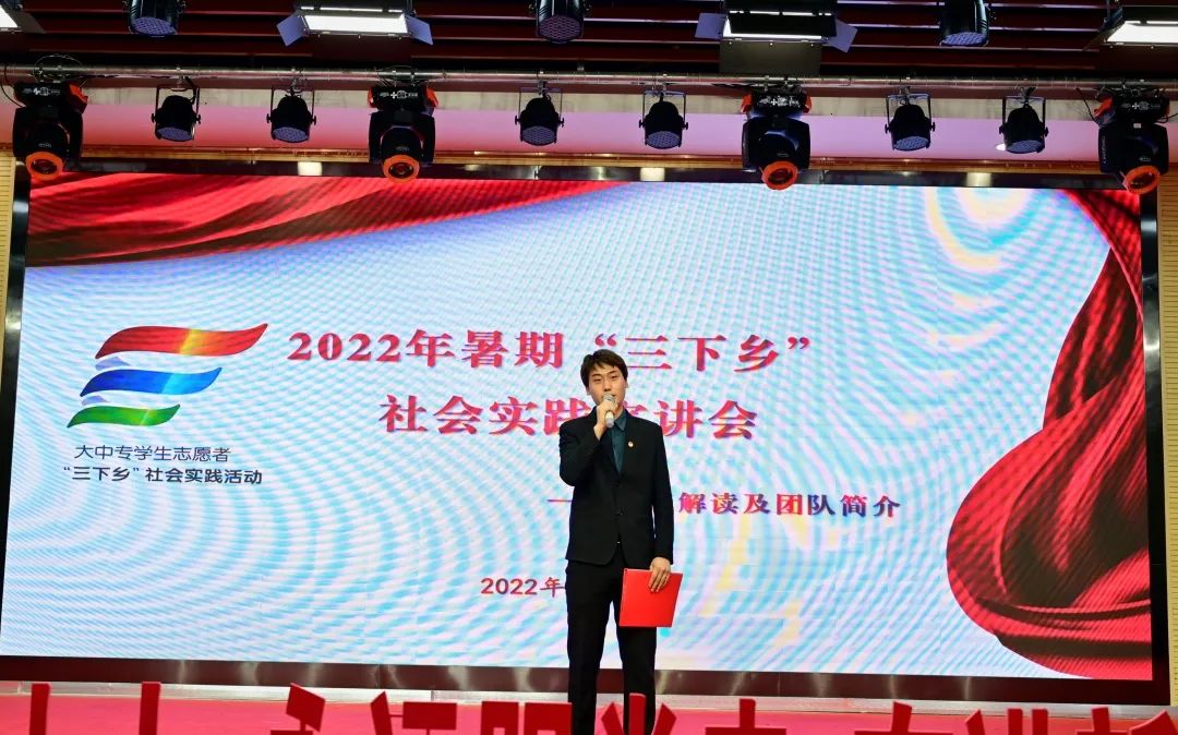 校团委副书记刘雄老师宣读了《bet36365路检测中心2022年暑期文化科技卫生“三下乡”社会实践活动的通知》。同学们从中了解到,36365官网2022年暑期“三下乡”包括党史学习教育与理论宣讲实践团、新时代文明与国情观察实践团、乡村振兴与文化惠民实践团、民族团结实践团、“返家乡•进企业•回母校”社会实践专题等五个社会实践内容。