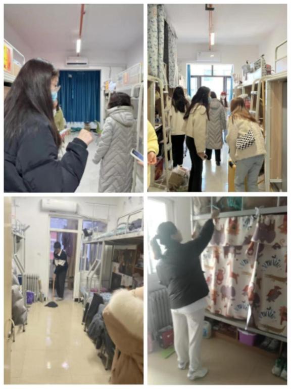 全面走访,认真督促检查。辅导员对所带班级学生宿舍进行全面走访,督促学生认真打扫宿舍卫生,并对学生宿舍内部、阳台、楼道、洗漱区、卫生间等区域的卫生打扫情况及是否存在安全隐患进行检查。
