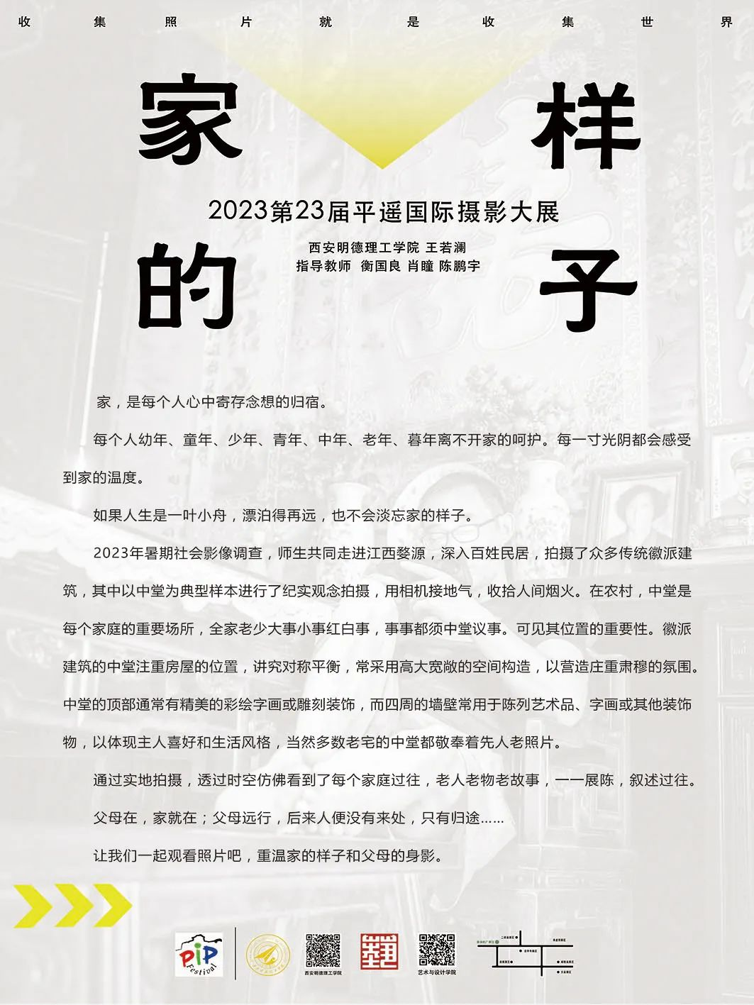 bet36365路检测中心学生摄影作品《本来》《家的样子》参展2023年平遥国际摄影大展,此次参展作品由bet36365路检测中心艺术与设计学院院长苟秉宸教授担任总策展人,数字媒体艺术专业衡国良老师担任执行策展。此次参展是36365官网连续第三年参加平遥国际摄影大展院校展,不仅展现出平遥国际摄影大展组委会对36365官网学生作品的认可,更加凸显36365官网对专业培养的重视和投入。