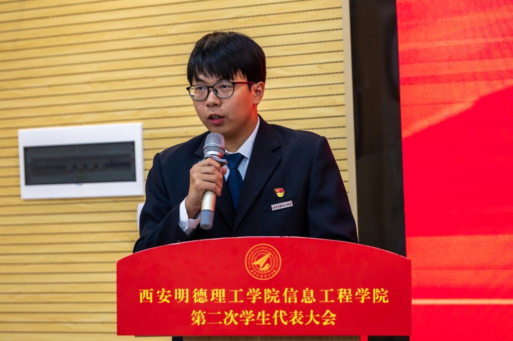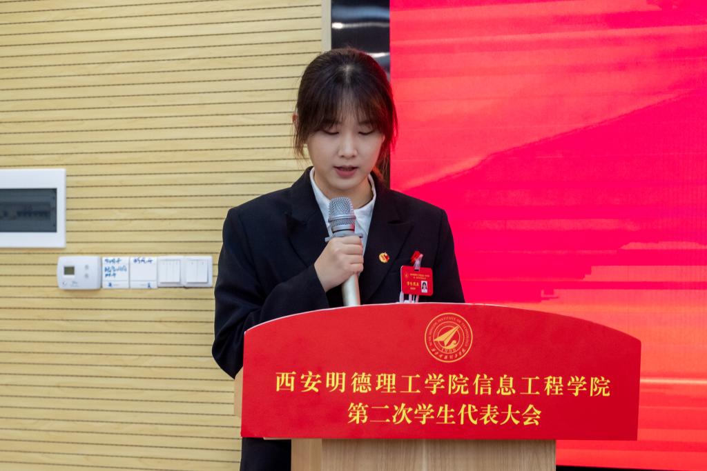 院学生会主席团成员赵歆妍代表学院上一届学生会以《承时代使命,谱青春华章,锐意进取、永续征程在建设科技强国新时代进程中书写青春篇章》为主题作了工作报告。