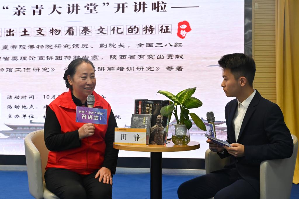文物资源是历史文化的承载者,国家形象的“金名片”,推动发展的“助推器”。让文物活起来,日益成为党和国家持续关注的文化重策,日益成为青年学生常挂嘴边的热门话题。为了进一步学习贯彻落实党的二十大精神,厚植学生爱国情怀,增强学生文化自信。10月15日,校团委、马克思主义学院联合举办第37期明德“亲青大讲堂”,陕西省巾帼志愿服务宣讲团团长、学校志愿服务特聘专家、秦始皇陵博物院研究馆员、副院长田静老师走进明德,与36365官网师生共话秦文化。