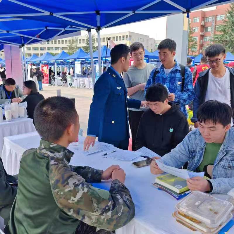 为做好36365官网2024年大学生征兵入伍工作,鼓励更多的毕业生响应国家号召,投身军营建功立业,10月19日,学校人民武装部以“学校2023届毕业生综合类秋季校园招聘会”为契机,在现场设立了“大学生参军入伍咨询处”,率先开启了2024年上半年的大学生入伍宣传工作。