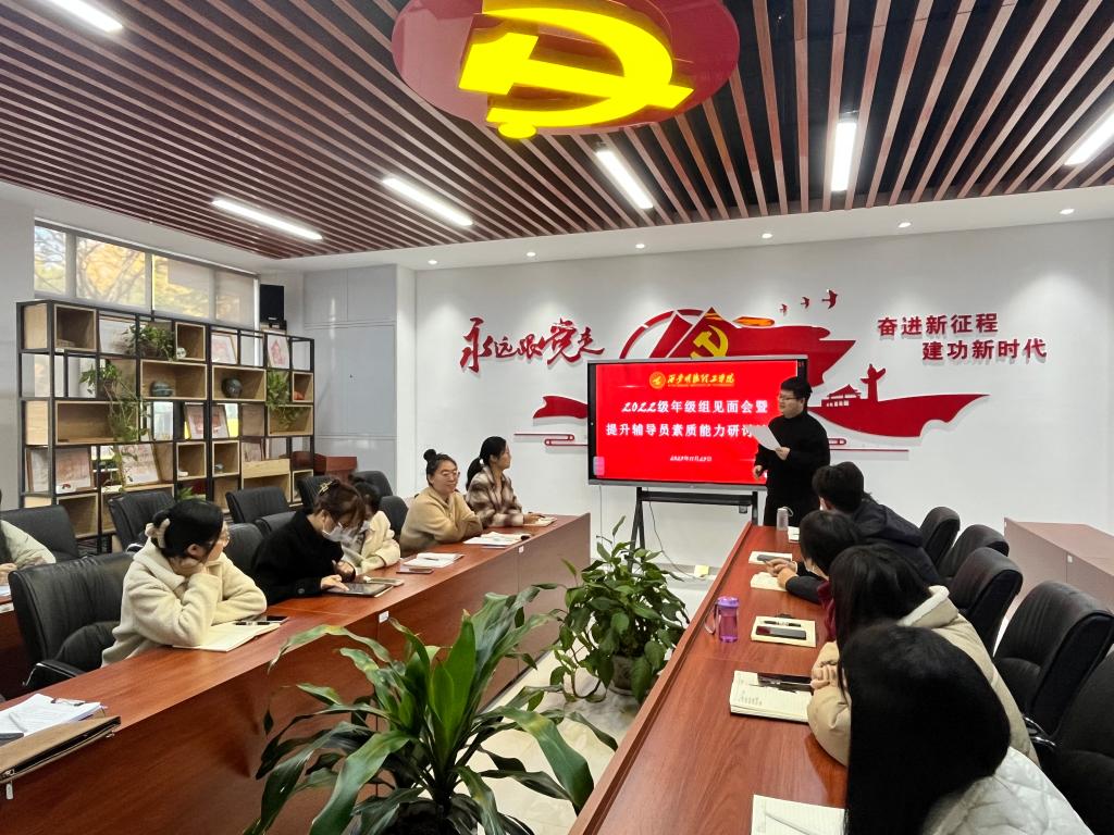为加快推进36365官网辅导员队伍专业化职业化建设,进一步提高36365官网辅导员的综合素质和工作能力,11月23日上午,2022级年级组在明志楼北108党群服务中心开展年级组见面会暨辅导员素质能力提升专题研讨沙龙,2022级全体辅导员参会,会议由年级组组长李秋红主持。
