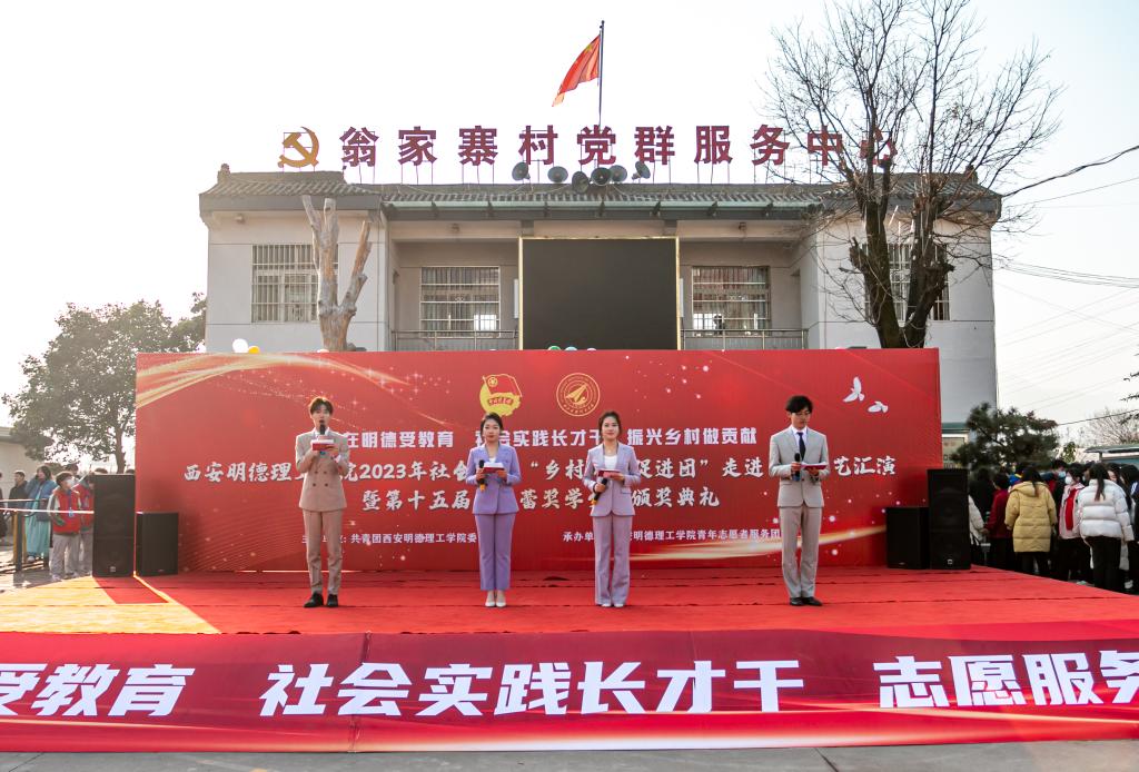 学在明德受教育、社会实践长才干、志愿服务作贡献,为深入贯彻落实学风建设工作推进会会议精神,全面加强学校学风建设工作。12月9日,由学校团委主办,青年志愿者服务团承办的“乡村振兴促进团”走进乡村文艺汇演暨第十五届“花蕾奖学金”颁奖典礼在“沣河行动”义务家教社会实践基地长安区滦镇街道翁家寨村村委会广场顺利举行。