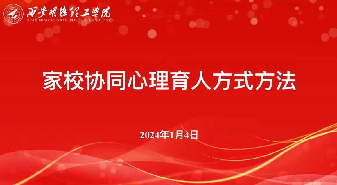 为构建家校合作体系,畅通家校沟通渠道,实现家校良性互动,形成心理育人合力,2024年1月4日上午,大学生心理健康教育中心在建德楼203报告厅举办题为《家校协同心理育人方式方法》讲座。全体辅导员、心理健康教育教师参加了本次讲座,讲座由大学生心理健康教育中心主任薛飘讲授。