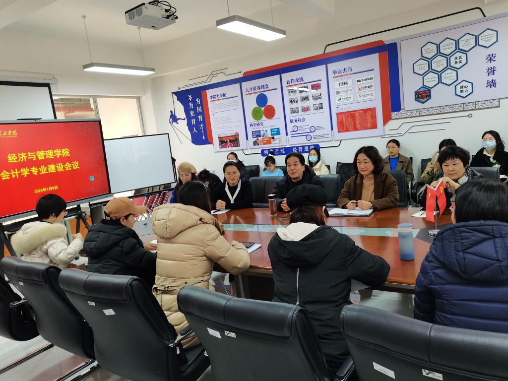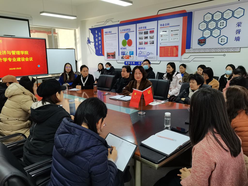 为推进会计学专业建设,提升专业建设质量和水平。1月8日上午,经济与管理学院在明志楼北606召开会计学专业建设研讨会。经济与管理学院院长郭鹏教授,副院长许萍、雷娟,会计学专业全体教师参加了会议。会议由许萍主持。