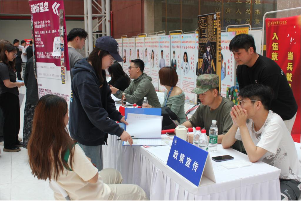 招聘会现场近千余毕业生参会,求职气氛浓厚。每个展位前都围坐着充满激情的毕业生。此外,现场专门设立求职服务、征兵政策咨询等功能服务区,帮助毕业生明确职业发展方向和目标,提高求职的成功率。此次招聘会还吸引了非毕业班的学生,提前了解招聘流程和岗位需求,做好职业生涯规划。会后,陕西猿起信息科技有限公司、咸阳圆梦职业学校等企业开展专场宣讲会,进一步和学生沟通,提高了招聘进度和效率。