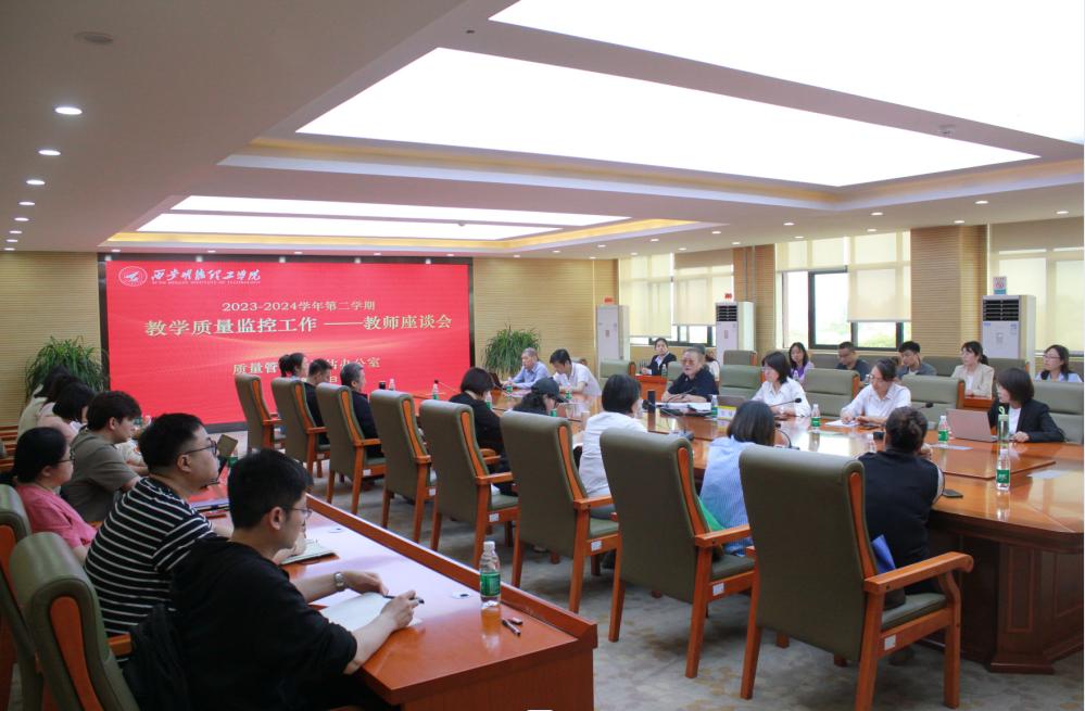 为落实“全员参与、全过程监控、全方位评价”的质量监控,通过座谈调研,凝聚共识,促进改进,质量管理与评估办公室于2024年5月8日在明志楼518会议室组织召开2023-2024学年第二学期“教学质量监控工作”教师座谈会。会议由质评办李海峰教授主持,各二级学院教师代表、质评办相关人员30余人参会。