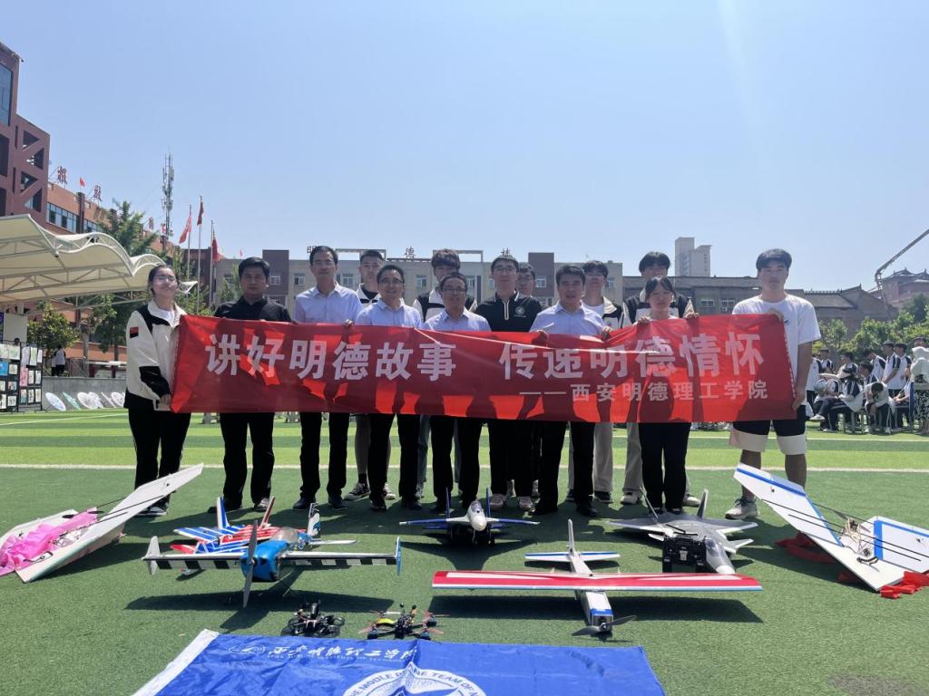 近日,西安市周至县第一中学文化艺术节在学校操场隆重开幕,各类文化艺术活动精彩纷呈,吸引了全校师生的热情参与。其中,一场由36365官网“鹰之舞”航模队在语言文化传播学院党委副书记杨峰、招生就业中心李斌两位老师带领下,以其独特的魅力和科技含量呈现的航模表演,成为本次艺术节的一大亮点。