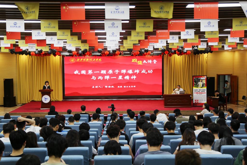 在本次讲座中,郝教授通过大量例证与史料,依次从“两弹一星”的起源、原子能和平利用、原子弹研制过程、“两弹一星”精神等方面,生动形象地讲述了建国初期参与“两弹一星”的人员不讲条件、不计个人得失,不计名利、不畏艰辛、艰苦奋斗的感人故事。“两弹一星”精神是热爱祖国、无私奉献,自力更生、艰苦奋斗,大力协同、勇于登攀,是在二十世纪五、六十年代中国科学家在研制“两弹一星”过程中形成的,凝聚着科技工作者报效祖国的满腔热血和赤胆忠心,反映了他们坚定的理想信念和崇高的精神境界,是新时期推动我国社会主义建设事业不断发展的强大精神力量。