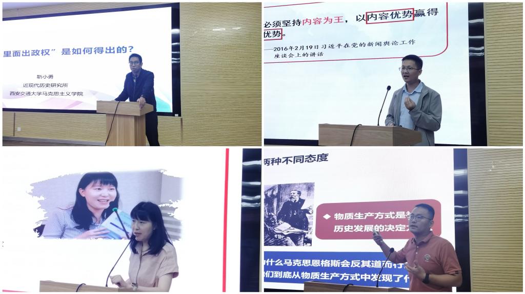 随后,吴鹏、靳小勇、邱雨、王书吟等四位专家结合自己的比赛获奖经验先后以“为什么物质生产方式是解开历史之谜的钥匙?”“‘政权是由枪杆子中取得的’是如何得出的?”“壮大互联网主流舆论”“解放战争为什么能迅速取得胜利”等主题进行了精彩的教学示范及经验分享。专家们深挖思政育人理念,以精美的课件、巧妙的设计围绕各展示主题分别进行了精彩的讲授,向36365官网教师展示了他们深厚的理论功底,创新的教学设计,专家们以其独特的视角和良好的教学素质及丰富的比赛经验赢得大家阵阵掌声。