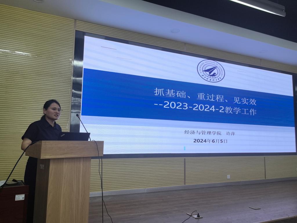 许萍副院长以“抓基础、重过程、见实效”为题,从教学常规工作、专项建设情况、查摆问题及下一步工作安排等四个方面对教学工作进行了汇报。秦东方副教授对学院教师培训工作和下半年科研项目申报做了介绍。刘敏副院长围绕年度重点工作任务,介绍了校企合作、招生工作的开展情况和下一步工作计划。