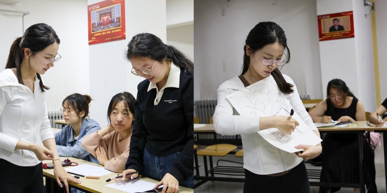 此次活动由艺术与设计学院刘思瑞老师带领开展,活动伊始,刘老师讲解了线描艺术与心理疗愈的关联,并借助格洛丽亚·威尔科克斯博士的情绪轮盘模型,帮助学生创建属于自己的视觉图库。随后,运用声音这一媒介,播放钢琴曲和湍流声引导学生们选用自己的视觉图库将当下情绪以线条的形式尝试表现。最后,以“送给自己的盆栽”为主题,带领学生释放情绪、勾画期望,并鼓励大家分享线描过程中的内心感受,以其独特的视角,引领学生们深入探索线描艺术的魅力。