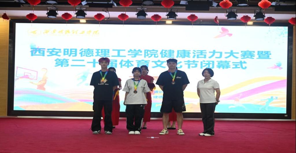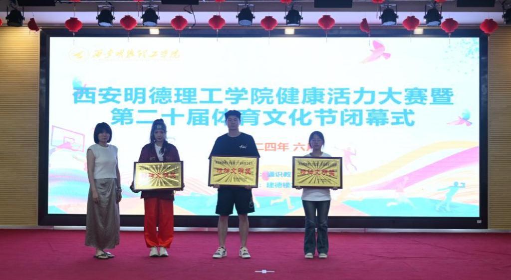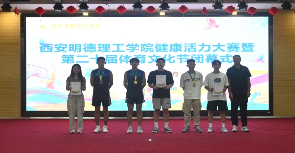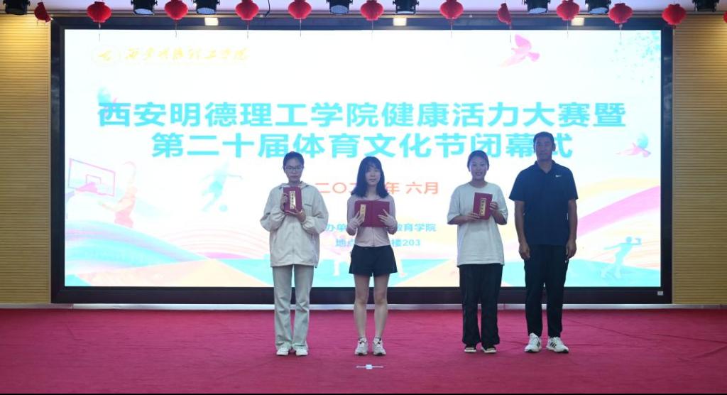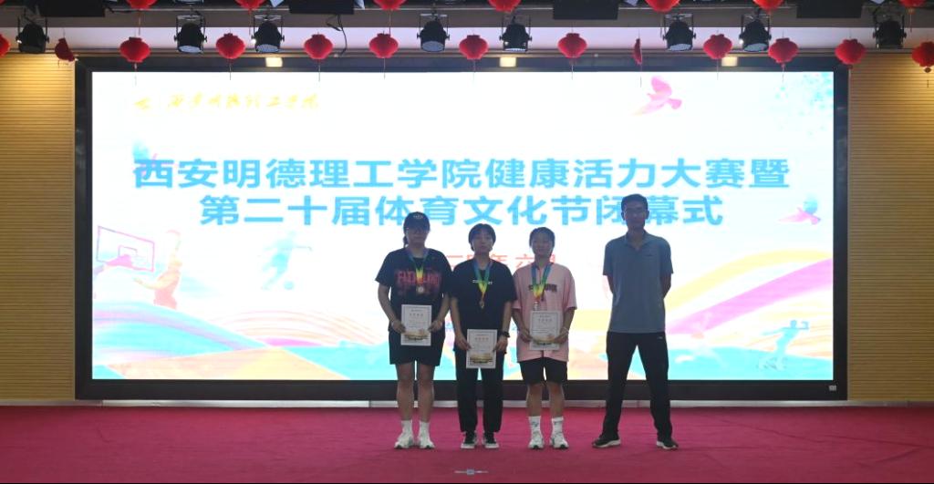 最后,由本届体育节赛事主管程家星老师宣布获得体育文化节前三名的获奖单位,并为获奖队伍颁奖。高等职业技术学院、信息工程学院、经济管理学院依次获本届体育文化节团体前三名。