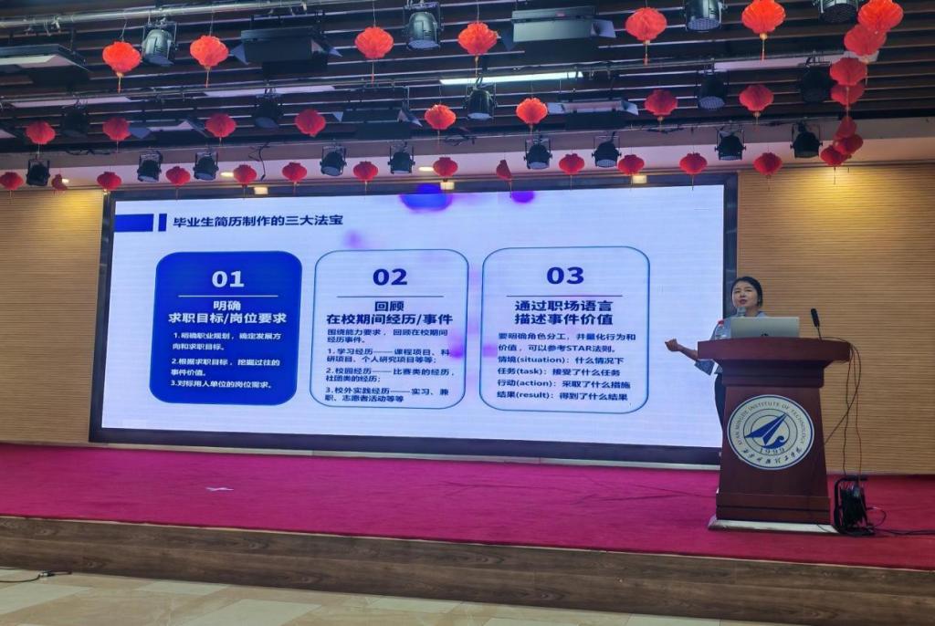 为了进一步推进毕业生就业工作,帮助毕业季学生了解就业形势,掌握就业技巧,明确就业方向。6月18日,招生就业中心特邀国家高级人力资源管理师付莹,在建德楼203报告厅为毕业生带来了一场以“求职简历制作及面试应对技巧”为主题的就业指导讲座,学校2025届300余名毕业生及辅导员参会。