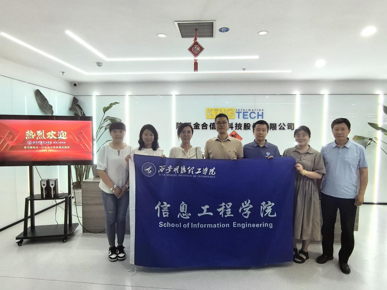 7月9日,信息工程学院执行院长翟书颖教授带队,办公室主任尹莹、专业负责人马蕾、专业骨干教师陈世亮及多位专业教师赴陕西金合信息科技股份有限公司开展校企合作洽谈,并举行企业导师聘任仪式。陕西金合信息科技股份有限公司董事长张文泉携软件研发部部长杨康、行政部负责人王莉莉热情接待了学院一行。
