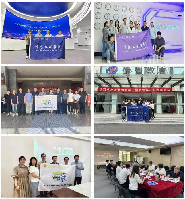 为持续落实“四百工程”专项活动工作要求,认真开展学校“百名教师访百企”暑期社会实践活动,进一步深化校企合作,拓宽学生实习实训渠道,促进毕业生高质量就业。暑假期间,信息工程学院领导班子、专业负责人、专职教师、辅导员等36人先后前往北京、福建、大连、西安等地走访西安航光卫星测控技术有限公司、陕西金合信息科技股份有限公司、中科院国家授时中心(航天基地)、中能电气股份有限公司福州总部、传智教育、华清远见集团、龙芯中科技术股份有限公司、北京北科海腾科技有限公司、麒麟软件有限公司、大连东软、博为峰软件股份有限公司西安分公司、陕西齐力测控科技有限公司、西安安泰测试科技有限公司等13家企业。在实习实训、教师培养、就业招聘等方面达成深度合作意向,共同探索校企合作、产学研用等协同育人新方法,新路子。