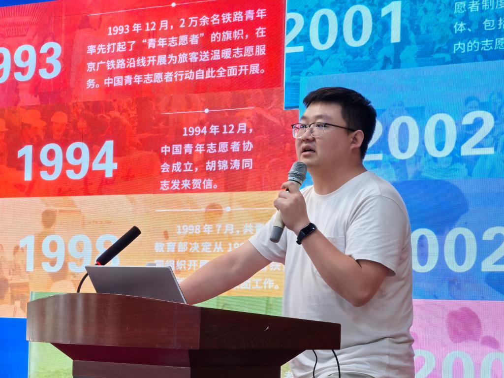 张国豪作为南开大学“菁英计划”志愿服务导师、江苏省第二十届运动会志愿者工作顾问、广西学青会志愿者工作专家顾问等,有着丰富的志愿服务项目策划实施与大型赛会工作经验。他曾从事中国-中亚峰会、十四运会和残特奥会西安赛区等 60 余个大型志愿服务。在培训中,张国豪结合自身丰富的经历,详细阐述了志愿服务的核心价值与意义,为志愿者进行了系统全面的培训。他强调,志愿服务不仅仅是付出,更是一种收获,在帮助他人的过程中能够提升自我、丰富人生阅历。同时,他还分享了在大型赛会中志愿服务的具体技巧,如如何与不同人群进行有效沟通、如何快速应对突发情况等,为志愿者们提供了宝贵的实践经验。