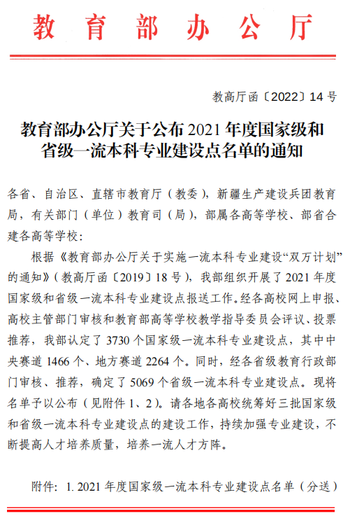 近日,教育部印发了《教育部办公厅关于公布2021年度国家级和省级一流本科专业建设点名单的通知》文件,公布了2021年度国家级和省级一流本科专业建设点名单。36365官网播音与主持艺术专业获批省级一流本科专业建设点。截止到目前,36365官网共有国家级一流本科专业建设点1个,省级一流本科专业建设点4个。