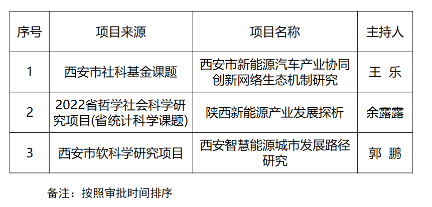 能源经济研究中心目前已经取得了一些阶段性成果。郭鹏教授申报成功西安市软科学研究项目《西安智慧能源城市发展路径研究》,王乐副教授申报成功西安市社科基金课题《西安市新能源汽车产业协同创新网络生态机制研究》,余露露副教授申报成功2022省哲学社会科学研究项目(省统计科学课题)《陕西新能源产业发展探析》。会议最后,与会教师就这三项申报成功的课题进行了交流。
