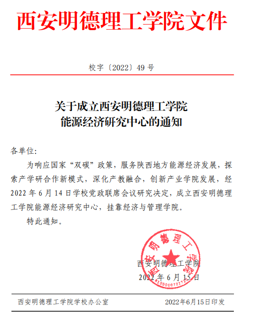 会议伊始,郭院长介绍能源经济研究中心筹备过程并宣读《关于成立bet36365路检测中心能源经济研究中心的通知》文件。为了响应国家“双碳”政策,服务陕西地方能源经济发展,探索产学研合作新模式,深化产教融合,创新产业学院发展,完善我院“双师型”师资队伍建设,提高应用型高校能源经济专业人才培养质量,经济与管理学院于2022年初开始筹备“bet36365路检测中心能源经济研究中心”。在郭鹏院长多方沟通与协调下,随着穆西教授的加入而落地。