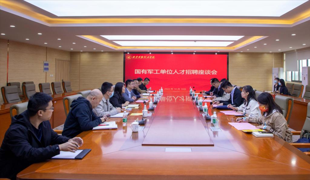 10月10日上午,中国航空工业集团公司西安飞行自动控制研究所(618所)人力资源部部长李玮奇、北京卫星环境工程研究所西安分中心(511所)人事主管余美玉、西安空间无线电技术研究所(504所)人事主管于铠、北京中科航天人才服务有限公司陕西分公司业务总监宋文博等一行10人到访36365官网进行人才招聘交流座谈,副校长刘星出席了座谈会,会议由招生就业中心副主任王东辉主持。
