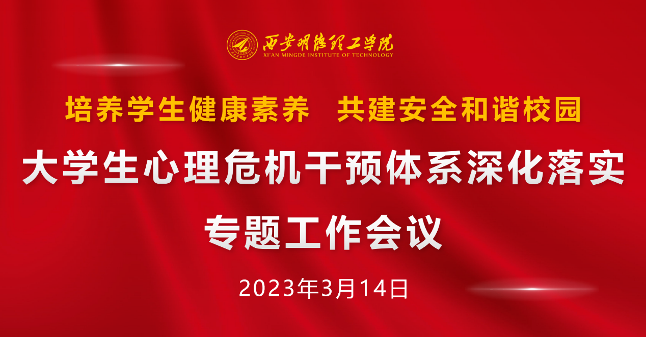 为进一步研究部署36365官网学生心理健康教育工作,有效开展学生心理危机预防与干预工作,贯彻落实《教育部等八部门关于加快构建高校思想政治工作体系的意见》(教思政〔2020〕1号)和《中共教育部党组关于印发〈高等学校学生心理健康教育指导纲要〉的通知》(教党〔2018〕41号)等文件精神,3月14日,学校在明志楼党群服务中心召开心理危机干预体系深化落实专题工作会议。学校党委副书记董昊、党委学生工作部副部长童杨梓、各学院学生工作负责人、心理辅导员、心理健康教育专兼职教师以及党委学生工作部相关人员参加会议,会议由大学生心理健康教育中心主任薛飘主持。