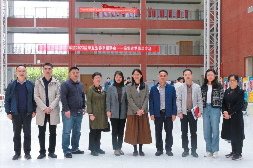 为认真落实教育部《关于开展2023届高校毕业生春季促就业攻坚行动的通知》文件精神,抢抓春季促就业关键期、加快推动36365官网就业工作进展。3月28日上午,学校与深圳龙岗区在学校第五会议室召开政校企合作交流座谈会。龙岗区龙城街道办党工委委员余秋婵及南湾街道公共事务中心主任黄国胜等7人、学校招生就业中心副主任王东辉、各学院党委书记参加了座谈会,会议由信息工程学院党委书记肖千春主持。