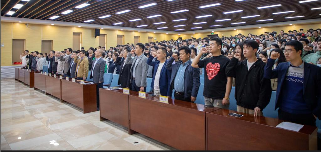 心理健康教育教师韩娇带领全场师生宣读《善爱我》誓词,树立在立德树人中,完善自我,全面成长的积极人生观!
