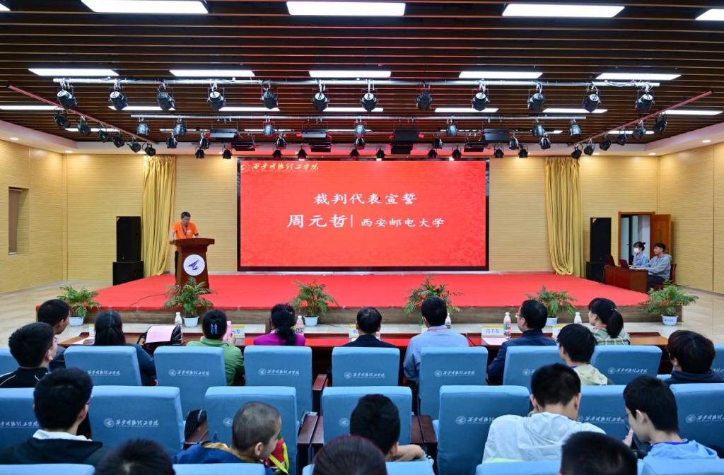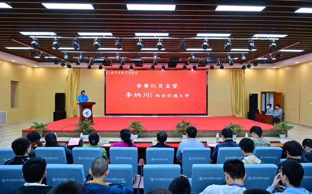 随后,西安交通大学李纳川同学代表参赛队员宣誓,西安邮电大学周元哲老师代表裁判组宣誓,西北农林科技大学耿耀君老师代表参赛教练发言。