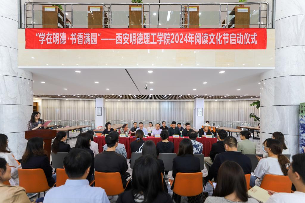 为扎实推进“学在明德”“教在明德”品牌创建,激发学生读书兴趣,丰富校园文化生活,营建“书香明德”阅读文化氛围,4月23日上午,学校在图书馆二楼大厅隆重举行“学在明德·书香满园”2024年阅读文化节启动暨“阅读推广大使”聘任仪式。校长王志刚、副校长朱延波、各职能部门负责人、二级学院党委书记、阅读推广大使(读书沙龙指导老师)、图书馆职工及学生代表出席了会议。会议由图书馆副馆长强丽丽主持。