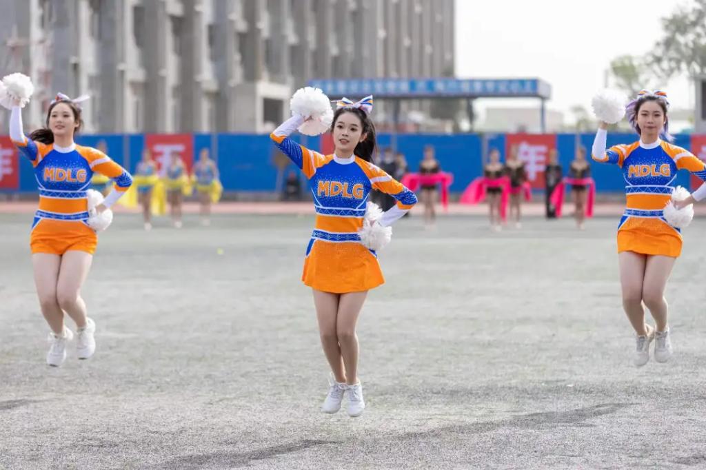 校健美操、啦啦操队带来的啦啦操表演,花球挥舞热情张扬,旋转跳跃活力四射。
