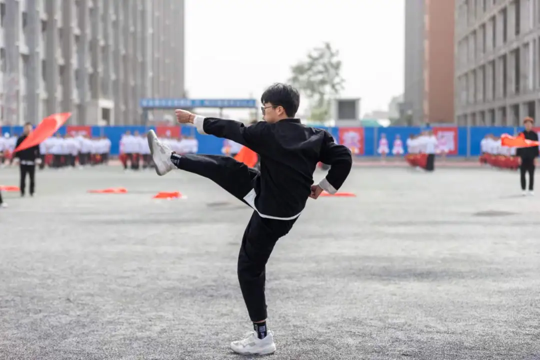 校武术队步伐稳健,身姿矫健,刚柔并济之力,展现中华武术的博大精深。