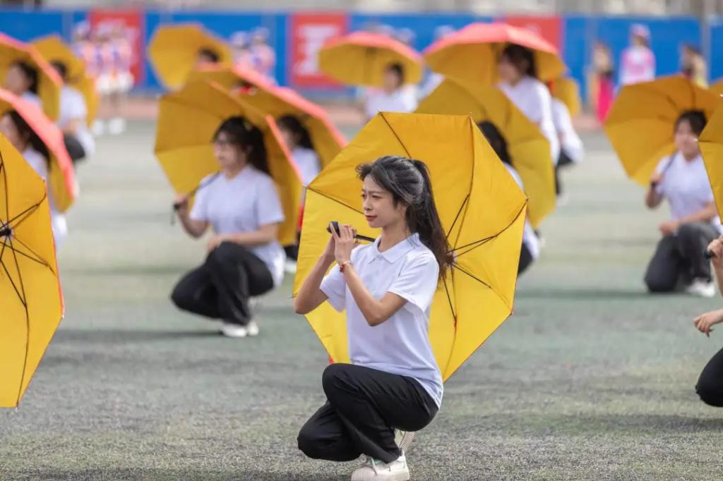 团体操《聚青春之火,燃时代之光》运用双面伞进行各种变换,表现36365官网学子“新青年、正青春”的精神风貌,鼓励广大学子奋勇向前争做自信的时代追光者。