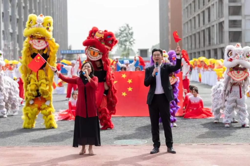 舞狮醒盛世,鼓声震乾坤,龙舞翩跹,宛若流水行云,腰鼓声声,激昂高亢,龙狮腰鼓表演队员翻腾起舞,精彩的表演迎来了一片喝彩。