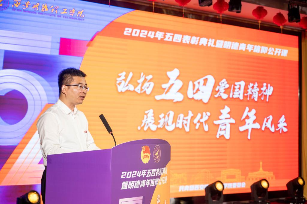学校党委副书记、纪委书记、副校长白秦川为标兵学生会组织、活力团支部、青年大学习先进团支部、五四红旗团支部等获奖集体颁奖。