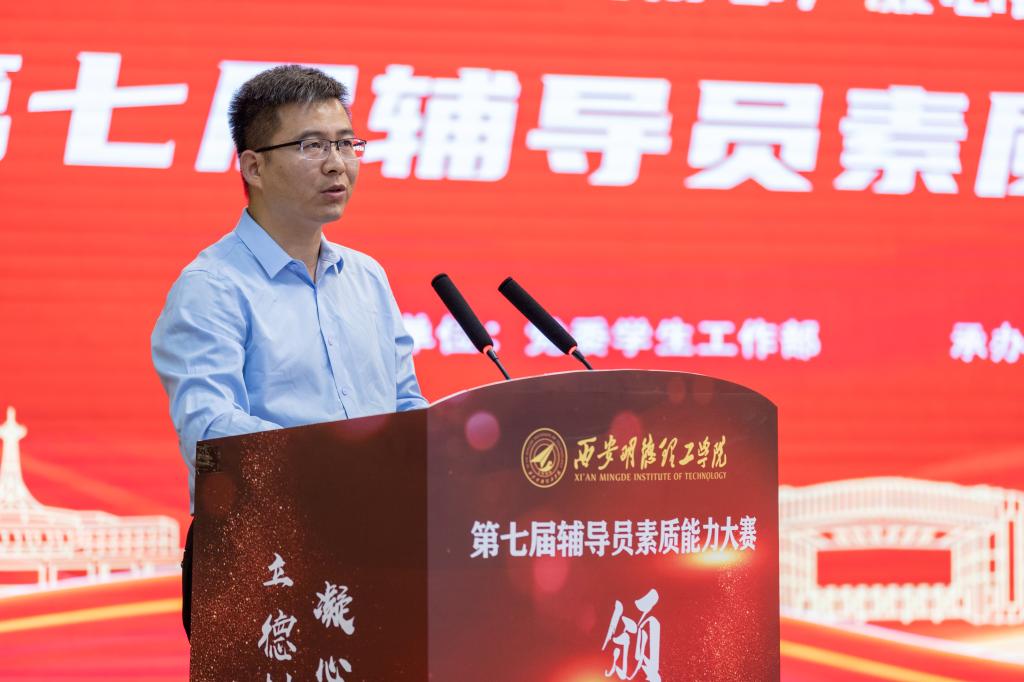学校党委副书记、副校长刘星在总结表彰大会上讲话,向受到表彰的先进集体和先进个人表示热烈祝贺,高度肯定了大赛的组织工作和选手的精彩表现。同时对全体学生工作干部提出以下要求:一要求“时”而思,向新而行,准确把握学生思想政治工作新理念新方向;二要求“实”而思,激发学校新动能,与学校事业发展同生共荣;三要求“是”而思,尽职履责勇担当,高质量落实好学生管路服务工作。希望全体辅导员能够以此次大赛为契机,以榜样为镜、向先进看齐,提高育人本领,增强服务能力,为学校高质量发展做出贡献。