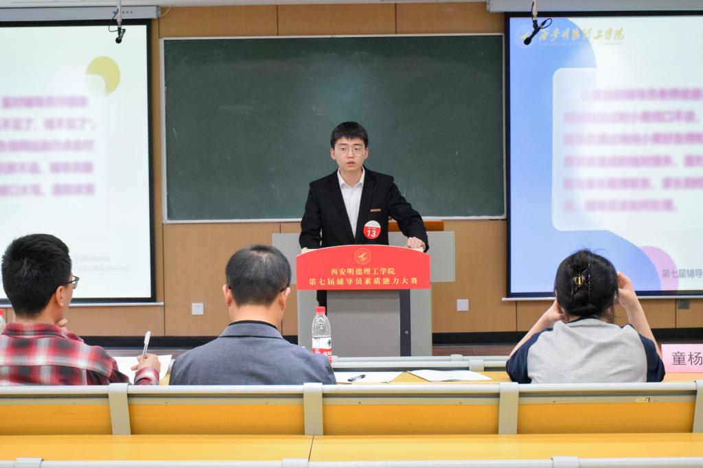 本届比赛对标省级辅导员素质能力训练营考核标准,设学情测验、案例研讨、谈心谈话三个环节,内容设计围绕学生思想政治工作的难点、重点、堵点,结合辅导员职责要求和工作实际,有针对性地对辅导员综合能力素质进行比赛,为全校辅导员学习研讨、切磋技能和交流经验搭建平台。
