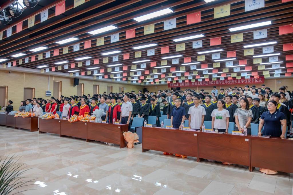 毕业典礼在庄严的国歌声中拉开帷幕。
